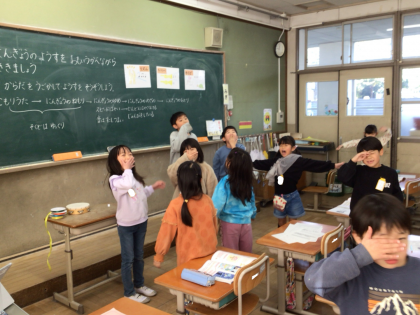 5つの場面に合わせて友達と相談しながら曲の強弱や速度に合わせて動きを変えるなどして楽しみながら鑑賞していました。