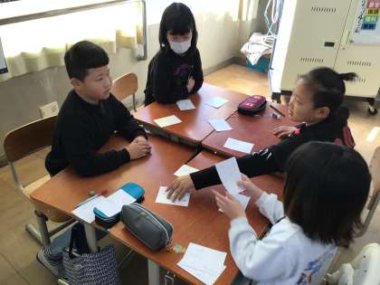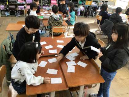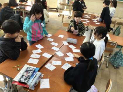 漢字の音読みと訓読みを使ったかるたを作って、みんなで遊びました。