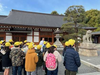 今日は、城南宮に行き、神社にはどのような歴史や由来があり、そして神社ではどのような仕事をしているのか、神主さんにわかりやすく教えていただきました。