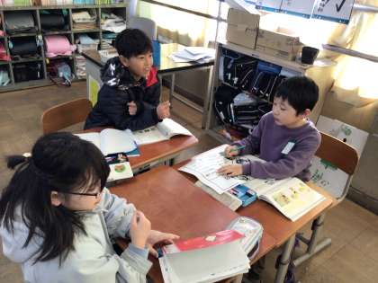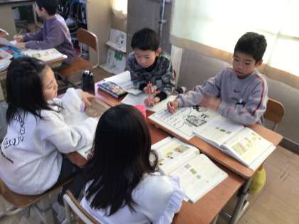 相手に伝わる言い方にするには、どのような表現をすればよいかグループで話し合っています。