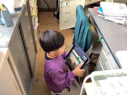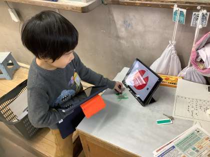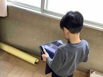 「すきまちゃん」を作って教室内の「すきま」に置いて写真を撮りました。