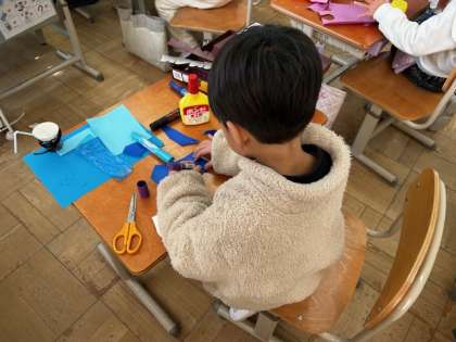 ひまわりでの展示作品は小さな巨匠展にも出品した作品になりますが、それぞれの学年でも作品作りを頑張りました。