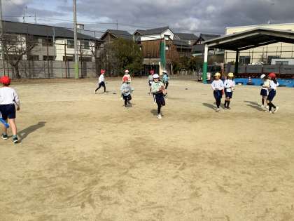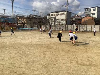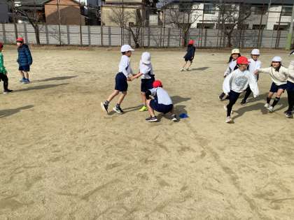 体育の学習でしっぽとりやみんなでおにごっこをしました。