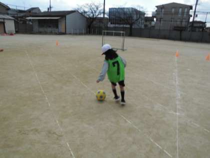 ボールをけってパスをつなげて、得点につながるようにみんなで練習をしました。