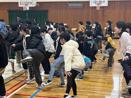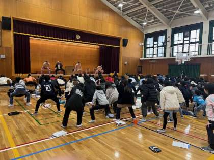 みんなで四股を踏むと、体育館に「ドン!」という音が響いていました。