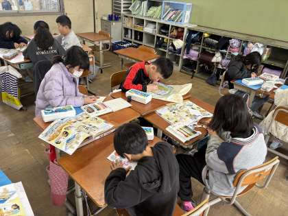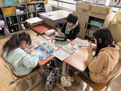 卒業する6年生に向けて「おめでとう」の掲示物を作っています。
