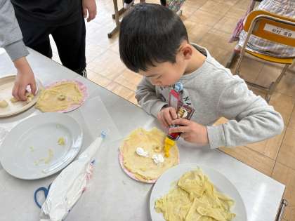 3月7日(金)に卒業を祝う会第1弾でクレープ作りをしました。