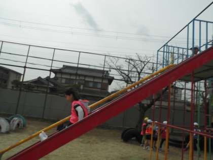 滑り台をおそるおそるすべる姿がとても素敵でした。