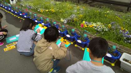 図画工作科の学習で、学校で春を感じるものを探しに行きました。