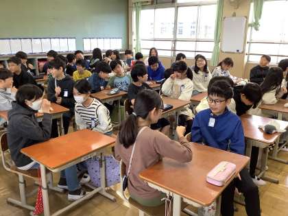 学年で集まった時に、おたずねじゃんけんをしました。