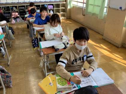など、難しそうな言葉が並び、少し苦戦していますが、一生懸命資料から考えを広げています。