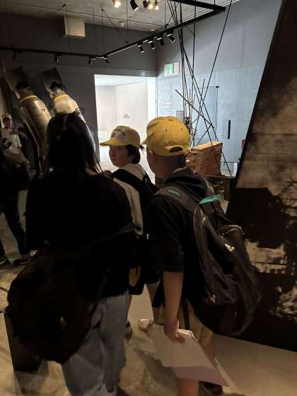 防空壕体験をしたり、空襲の被災遺物を間近に見たりすることができました。