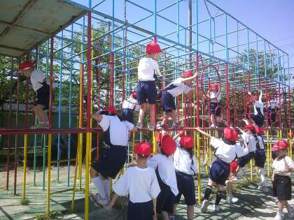手と足の4つのうち、3つは必ず遊具や地面につけておくこと。