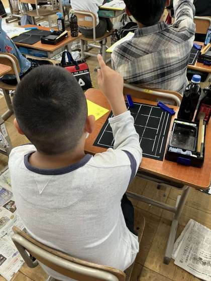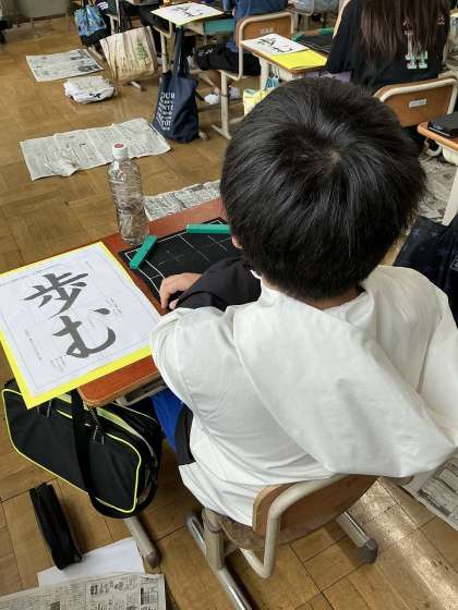 筆の使い方や墨液の量、姿勢などを意識して一生懸命学習に取り組んでいました。