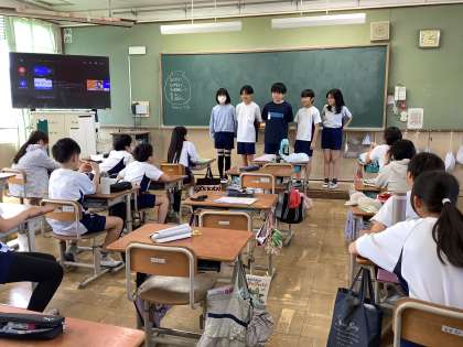 5人がそれぞれ違う言葉を同時に言い、それを聞き分けて何を言っているのかを当てました。口の動きに注目したり、一人の子を集中して聞いたり、声の大きい子に惑わされないように意識したりと、工夫しながら「聞く」ことを意識した時間になりました。