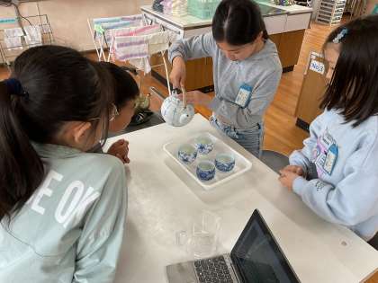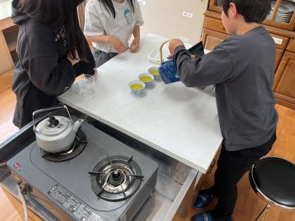 自分たちで作ったお茶をおいしそうに飲んでいました。