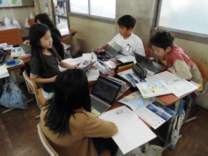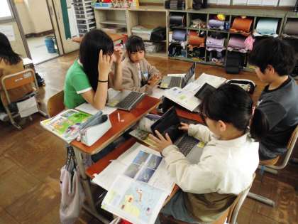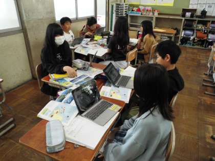 初めて見る島や地図から情報を読み取って、友だちと話をしながら領土について探究しました。