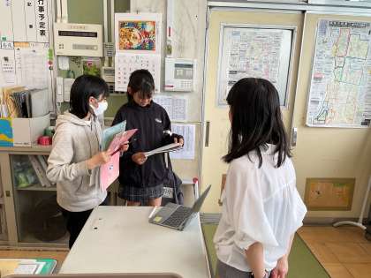 国語科「聞いて、考えを深めよう」では、下鳥羽のよいところに関わっている人にインタビューをしています。