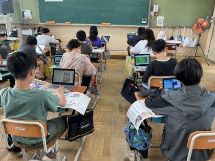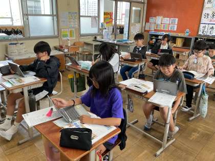 GIGA端末を用いて、何度も繰り返し外国語を聞き、Dictionaryで確かめながら単語を書きました。