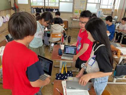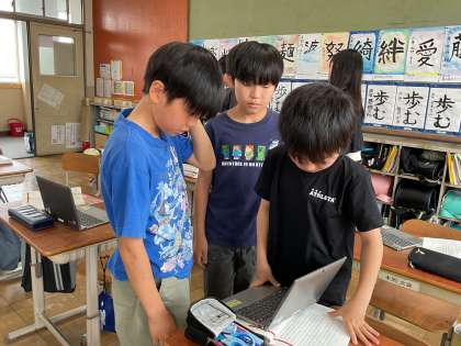 自分で読み取った考えをGIGA端末にまとめ、友達と話し合いました。