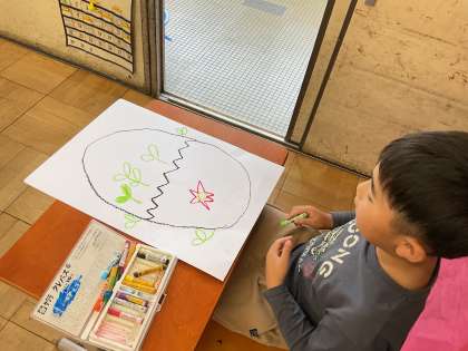 と、楽しんでたまごの絵を描いていました。