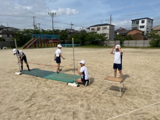 今日は、3歩や5歩で踏み切るタイミングと振り上げ足を高く上げる練習をしました。