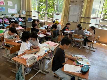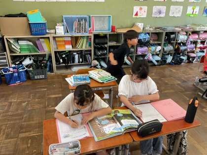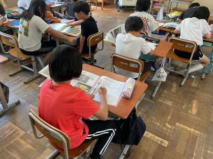 図書館の本を使って、世界で起こっている環境問題を調べています。
