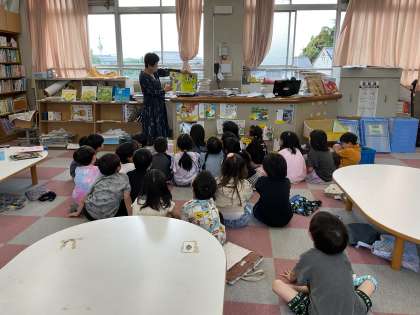 『コッケモーモーモー』を図書館司書の宇都宮先生に読んでもらいました。