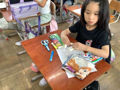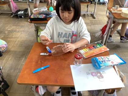 図画工作では、空き容器を使った工作をしています。