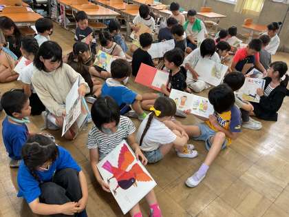 4年生 2年生への絵本の読み聞かせ