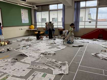 いろいろな方法を使って、新聞紙で楽しく活動しました。