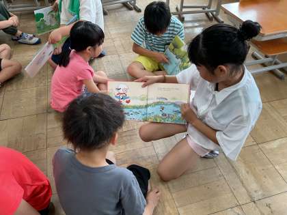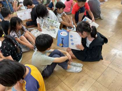 読書週間ということで4年生が2年生に絵本の読み聞かせをしてくれました。