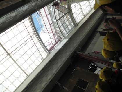 社会科の学習で調べたことを確かめることが出来ました。京都三条会商店街のアーケードを開けていただきました。