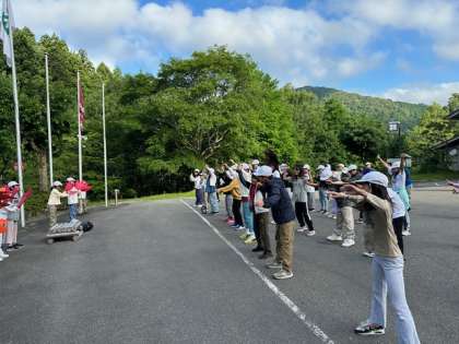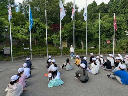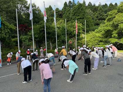 6時に起床して身支度を整え、朝の集いを行いました。体操で身体を動かし、今日の予定を確認します。