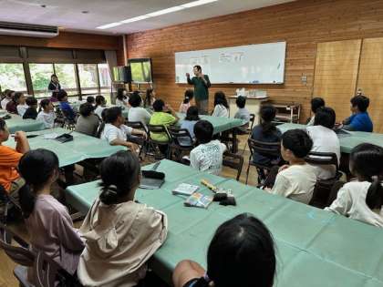 今からキーホルダー作りに取り掛かります。少し疲れている様子の子もいますが、予定通りに進んでいます。