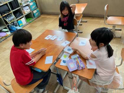 作ったカードを班の友だちと交流し、お気に入りの色を見つけました。