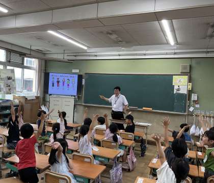 伏見署のスクールサポーターの方に来ていただき、防犯や社会のルールについて教えていただきました。