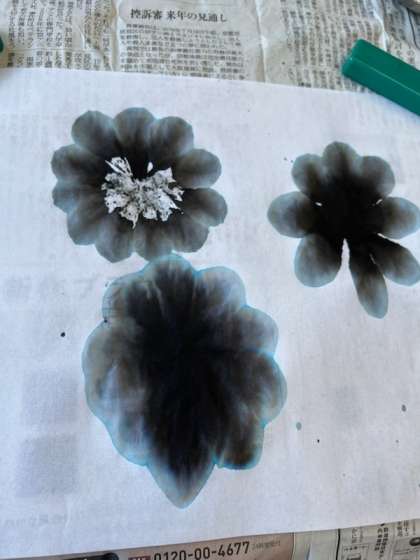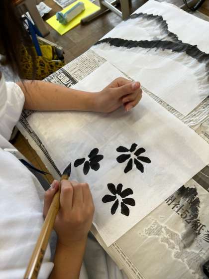 授業の締めくくりには、墨と水でできる模様を生かして、山を表現したり、花や竹を描くことにも挑戦しました。