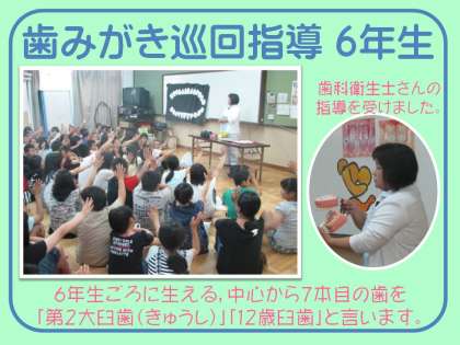 今日は歯科衛生士さんをお招きして,6年生が歯みがきの指導を受けました。