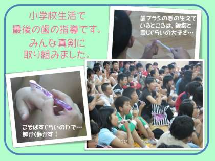 いつまでも長くきれいな歯でいられるよう,正しいみがき方を学びました。