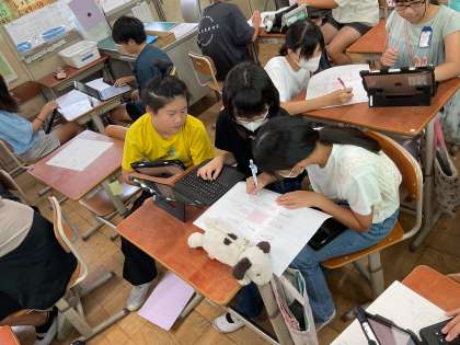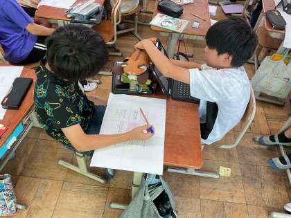 総合的な学習の時間では、下鳥羽地域の防災について調べ学習を進めています。