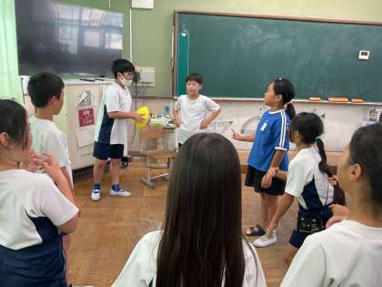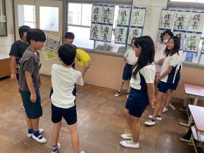 ぐんぐんタイムで相手と確認をとってとりやすいパスを投げる交流をしました。