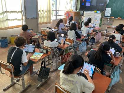 GIGA端末を使って、線を引いたり書きこんだりしながら、学習を進めています。