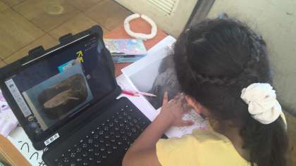 国語科「うみのかくれんぼ」で生き物について調べています。
