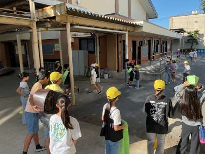 二学期になり、児童会本部で話し合いながらあいさつ運動を進めています。