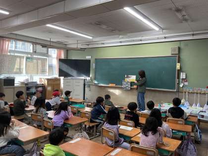 読み聞かせボランティアの方に、絵本を2冊読んでいただきました。