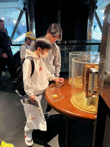 プラネタリウムの鑑賞を終え、科学館の見学をしています。