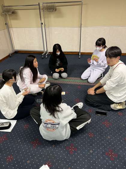 持ってきたカードゲームやトランプで遊んでいます。