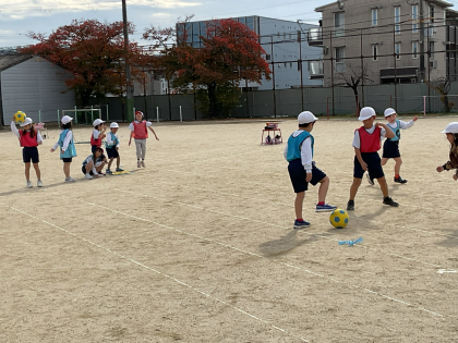 外で見ている応援隊も声を出して一生懸命応援しています。