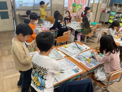 柳長公園で拾ってきた秋のいろいろを使って、おもちゃ作りに取り組んでいます。
